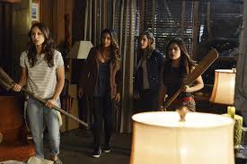 Na poniższym zdjęciu widzimy, jak Aria i Spencer (będąc w domku Ezry) trzymają wiosła, ponieważ myślą, że A próbuje je zaatakować.